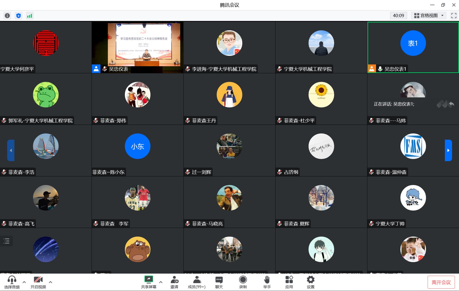 会上,马玉山传达学习习近平总书记代表第十九届中央委员会向中国共产党第二十次全国代表大会作的报告、参加党的二十大广西代表团讨论时的重要讲话、在党的二十大闭幕会上的重要讲话精神、《中国共产党章程(修正案)》,中央纪委工作报告以及宁夏团代表、中央书记处书记、中组部部长陈希参加宁夏代表团的讲话和宁夏代表团认真学习讨论党的二十大报告情况。