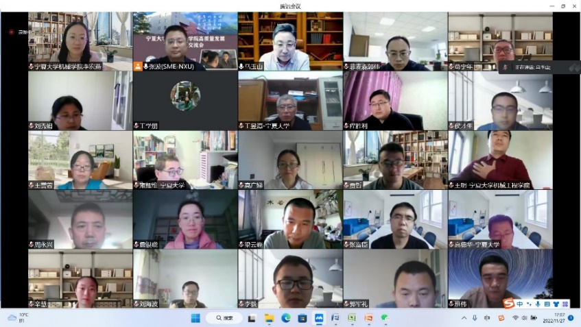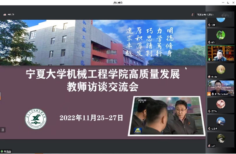 2022年11月25-28日,伟德官网组织召开了学院高质量发展教师访谈交流会。学院院长、中国工程院院士马玉山利用四天的时间集中与学院50余名专任教师在线进行一对一访谈交流,交流会由学院执行院长张波主持。吴忠仪表有限责任公司总工程师王学朋高级工程师、副总工程师刘海波博士、副总经理周永兴高级工程师、宁夏菲麦森工业软件技术有限公司总经理郭伟高级工程师等吴忠仪表团队骨干成员全程参加了访谈交流活动。