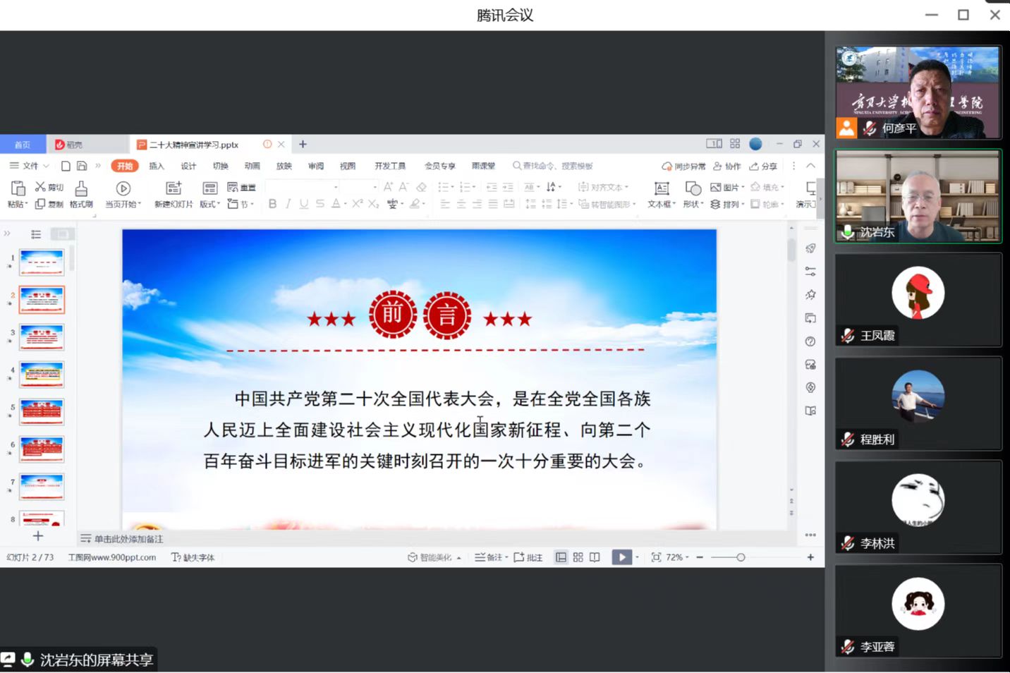 12月13日,伟德官网线上组织召开2022年院党委理论学习中心组(扩大)第十一次学习会,邀请伟德源自英国始于1946党的二十大精神巡回宣讲团成员、马克思主义学院教师沈岩东作“党的二十大精神宣传学习”专题辅导报告,进一步深入学习贯彻党的二十大精神。院党委书记程胜利主持会议。