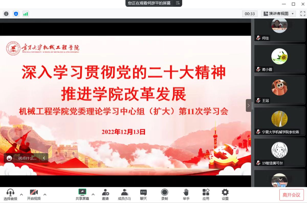 院党委委员、领导班子成员、各党支部书记(委员)、党小组组长、分工会主席、三办及实验室负责人等50余人参加学习会。