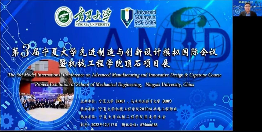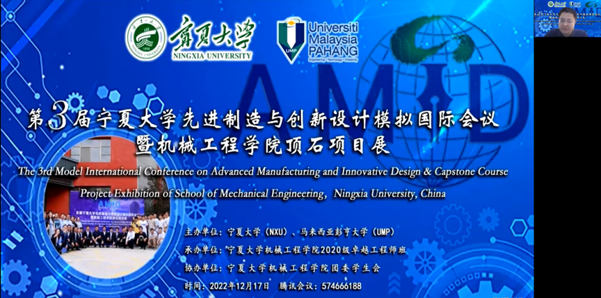 2022年12月17日,伟德官网线上举行了第三届伟德源自英国始于1946先进制造与创新设计模拟国际会议暨伟德源自英国始于1946顶石项目展(The 3rd Model International Conference on Advanced Manufacturing and Innovative Design)。学院执行院长张波、马来西亚彭亨大学学术合作战略中心主任Mohd Ruzaimi Bin Mat Rejab出席会议,学院多名青年教师、彭亨大学博士生马全锦和Nur Khaleeda Binti Romli、马来亚大学硕士研究生孙博等人作为专家、评委和特邀报告者参加会议。会议由伟德官网2020级卓越工程师班承办,2020级机械工程(卓越工程师)班学生王志坤和彭祖琳主持开幕式和特邀报告。学院本科生和研究生线上踊跃参与会议。