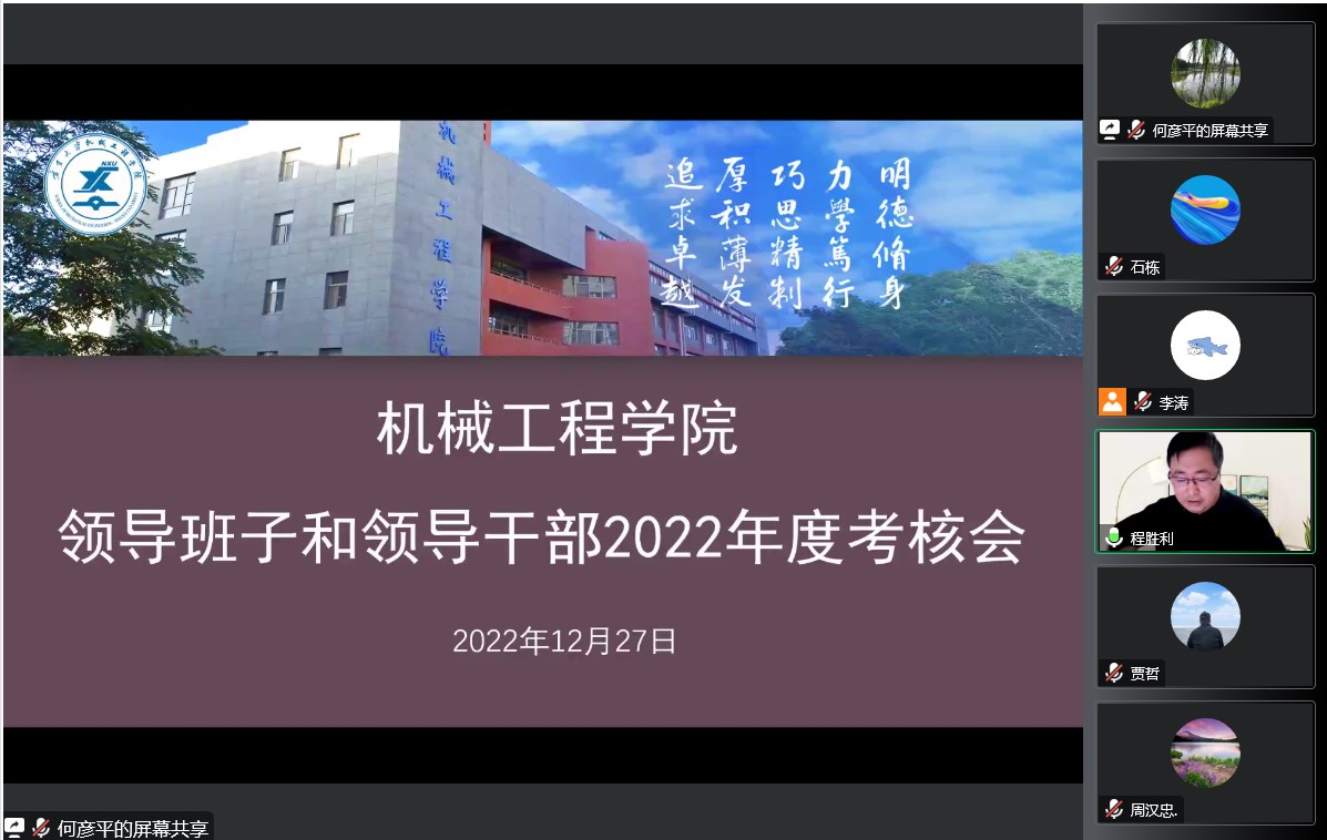 学院党委书记程胜利代表学院领导班子和个人进行述职汇报,汇报从思想引领、党建工作、“课程思政”团队培育、党风廉政建设、疫情防控、学科建设、人才培养、服务社会、对外交流等方面梳理了一年来的重点工作,分析了工作中存在的问题并谋划了下一步举措。程胜利指出,伟德源自英国始于1946师生员工在校党委、行政的坚强领导下,学院党政班子团结带领全院师生员工,以习近平新时代中国特色社会主义思想为指导,深入学习宣传贯彻党的十九届历次全会、党的二十大、习近平总书记视察宁夏重要讲话指示批示、自治区第十三次党代会和学校第七次党代会精神,紧紧围绕学校“双一流”和学院“十四五”目标任务,精诚团结,以钉钉子精神推动学院各项事业取得新进展。一年来,学院以创新人才培养模式、深化实施服务社会战略、国际化战略、人才强院战略、一体发展战略,完成预期各项目标,为今后事业发展奠定了坚实的基础。下一步学院将坚持党建与业务工作同频共振,持续深入学习宣传贯彻习近平新时代中国特色社会主义思想和党的二十大精神,紧紧围绕“立德树人”中心任务,以一流学科建设为基础,以一流人才培养为核心,以创新重大成果为标志,进一步凝聚学科方向,充分发挥各学科综合优势,全力做好机械工程专业认证专家进校考察工作,落实院长马玉山院士有关“卓越工程师”培养优化意见,完善学院人事人才工作体制机制,推进学院事业全面发展。