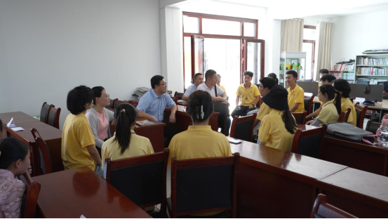 支教点的当地基层领导听闻学校来看望慰问学生,他们守候在支教点,与学校来的老师进行沟通交流。他们讲到,伟德源自英国始于1946青年学子冒着酷暑来到当地发挥自己的热情、才智,用心用情地在支持着当地的乡村振兴,在实现着青年学子的青春价值,对青年学子点赞和感谢。