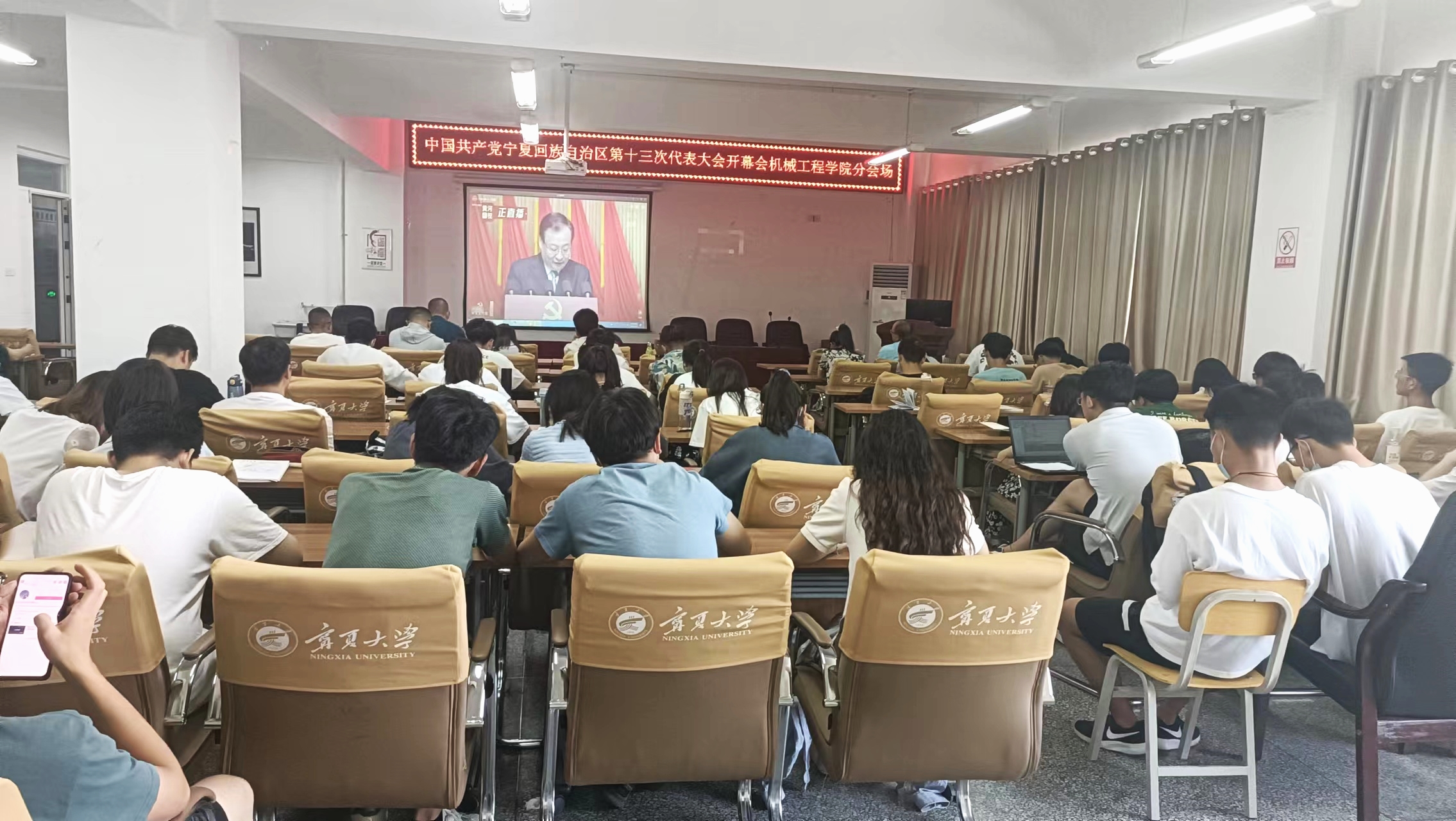 6月10日上午9时,中国共产党宁夏回族自治区第十三次代表大会在银川开幕。为认真学习贯彻大会会议精神,根据学校宣传部文件精神,伟德官网在文萃校区明远楼设立分会场,组织学院师生集中收看开幕会,另外学院其他师生分别通过手机、电脑等方式收看大会开幕实况直播。