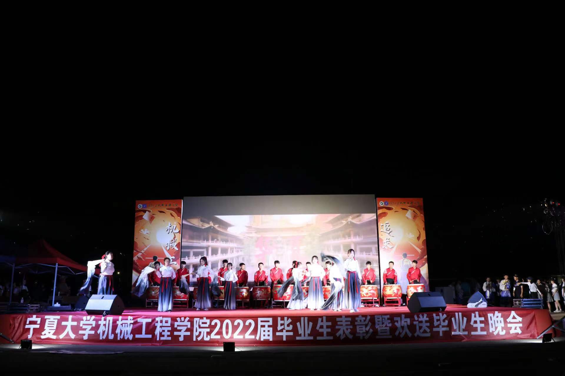 伴随着振奋人心的中国鼓,“忆·启奔赴下一场山海”欢送2022届毕业生文艺晚会正式开始!