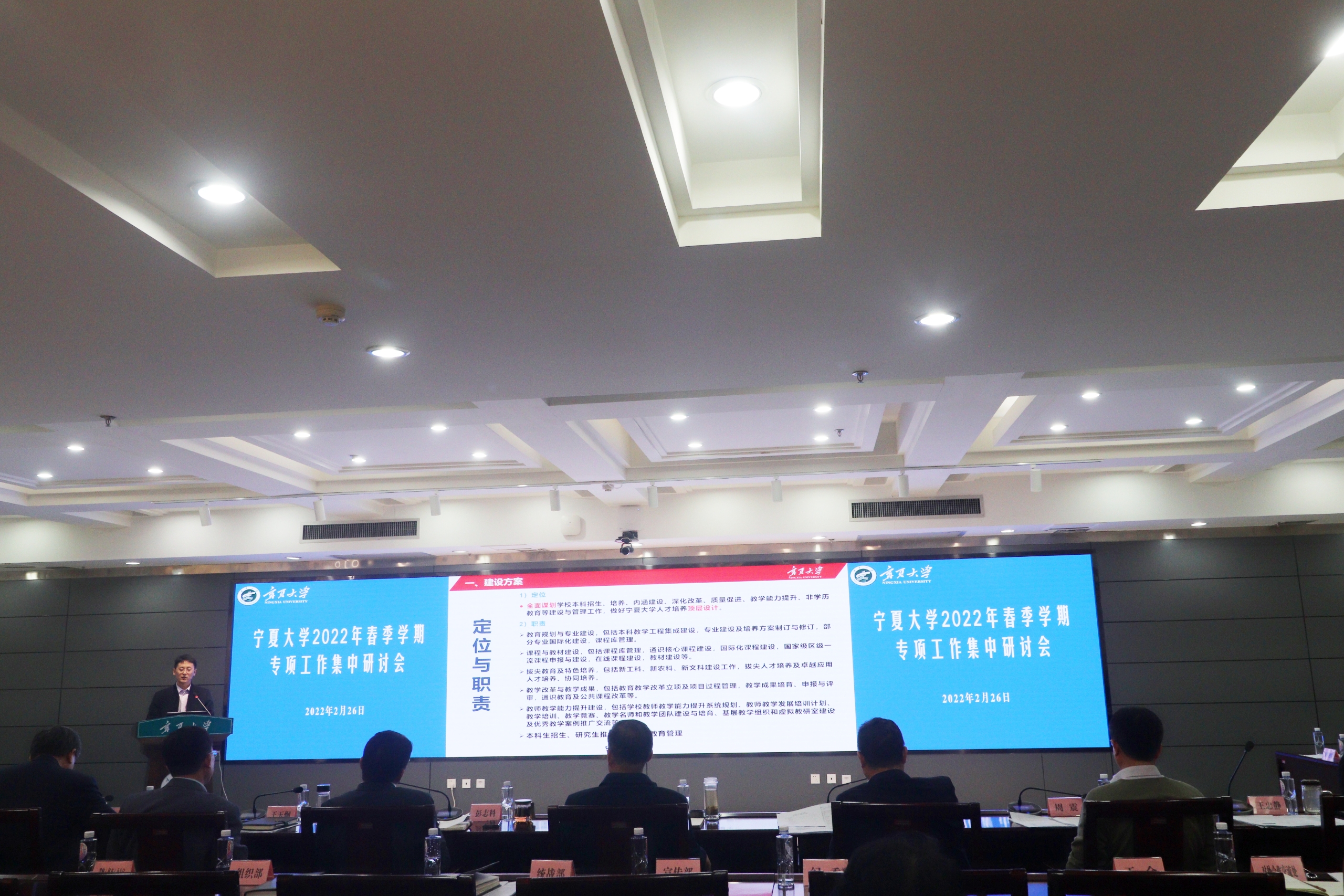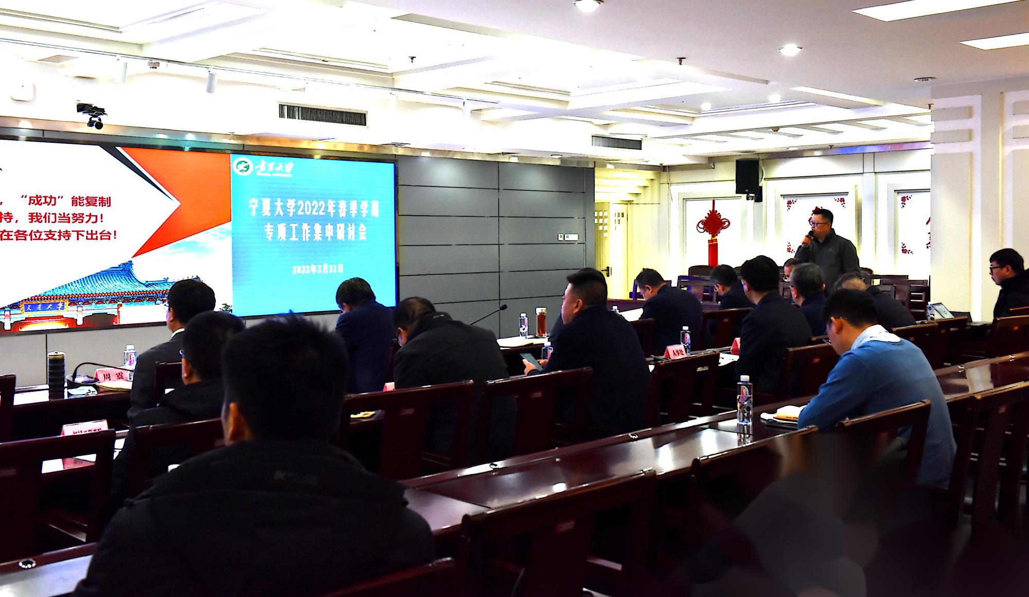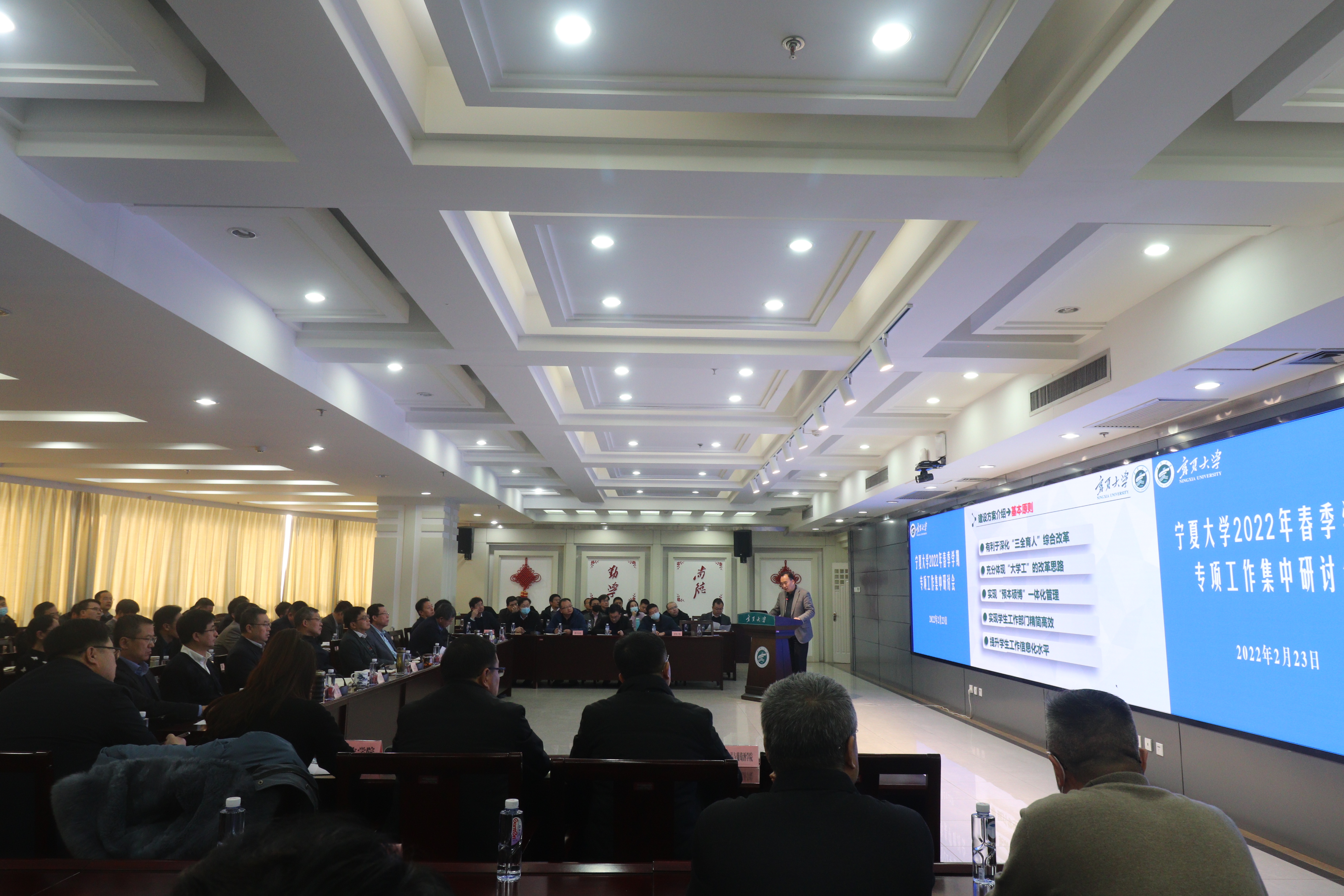 2月27日下午,伟德官网在贺兰山校区文荟楼东报告厅召开2022年春季学期重点工作部署会。领导班子成员从学校实际出发,结合各自分管领域,紧扣高质量发展主题,聚焦学校2022年建设发展主要任务,安排部署分管领域新学期重点工作。