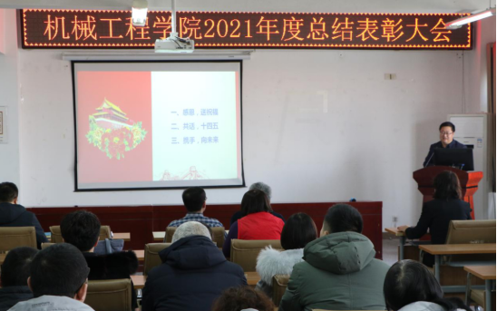 学院党委书记程胜利代表学院党委向全体教职工致辞,程胜利总结了学院2021年取得的“十大”标志性成绩,对学院“十四五”规划进行了展望,并向全体教职工致以新年的祝福。