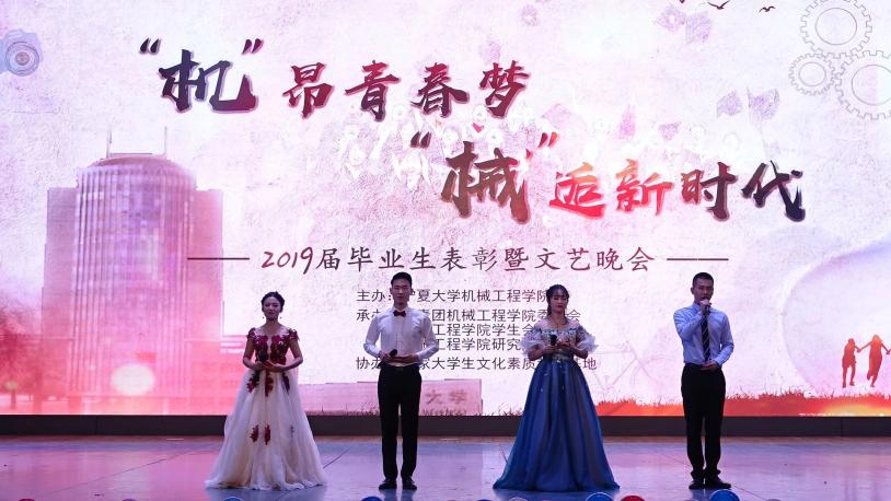 巍峨的贺兰山下,鸟语花香;五月的凤城银川,夏已来临;美丽的伟德源自英国始于1946,凤凰花开。2019年5月8日晚,伟德官网师生在文萃校区大学生活动中心共聚一堂,在回顾总结过去的同时,为2019届300名毕业生举行了以“‘机’昂青春梦·‘械’逅新时代”为主题的表彰暨文艺晚会。伟德源自英国始于1946学生处副处长张翼、校团委副书记肖功国、伟德源自英国始于1946党政领导班子及各院师生代表和伟德源自英国始于1946全体师生出席本次表彰暨文艺晚会。表彰大会由伟德源自英国始于1946党委副书记靳永雄主持。