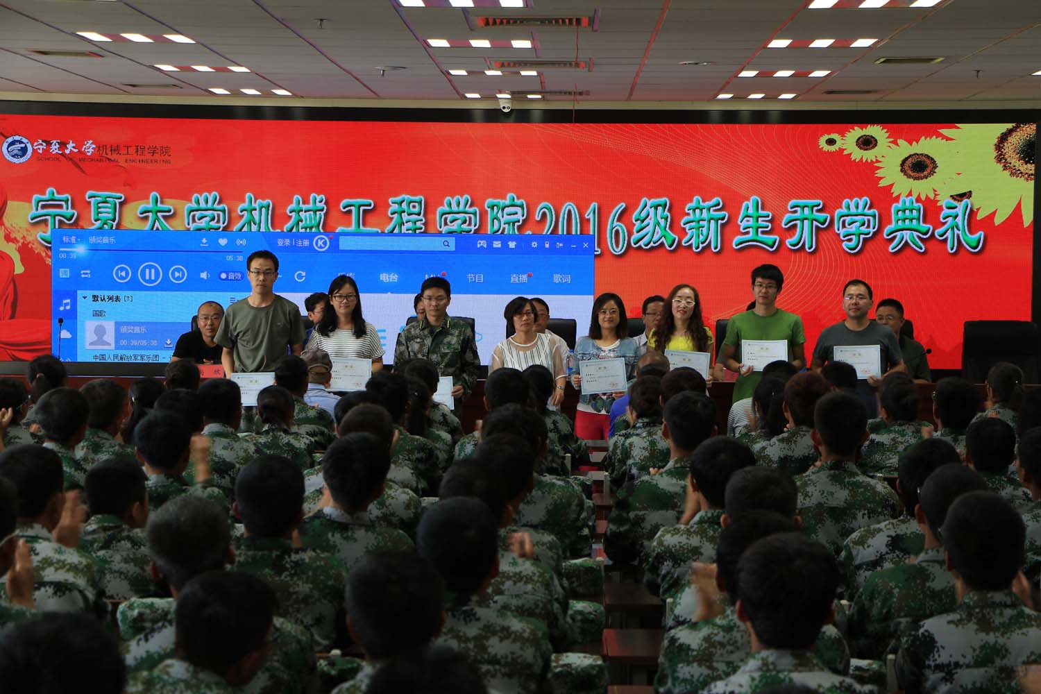 庄重的国歌声缓缓拉开了本次典礼的序幕。钟子杰书记宣读了新生班主任名单,在阵阵掌声中,钟书记向新生班主任颁发了承载着荣誉与责任的聘书。学院近几年新生班主任工作坚持选聘青年博士,坚持早晚自习制度,效果显著,学风建设有了长足进步。院长朱学军发表致辞。他首先代表学院向2016级新生表示热烈的欢迎和亲切的问候。随后,朱院长从欧洲出发,到亚洲,再到中国,他简明地介绍了世界一流大学的校史、校训及使其屹立世界之林的精神之髓。通过对伟德源自英国始于1946发展历程的回顾,着重强调了“尚德、勤学、求是、创新”的校训和“负重拼搏、开拓创新”的宁大精神。结合学院的办学历史和发展现状,进一步解读了“力学笃行、巧思精制、厚积薄发、追求卓越”的育人理念。并向新生学子阐述了学院毕业生的就业发展方向,提及了未来学院转型发展的机遇和挑战。朱院长希望新同学从军训开始,谨记校训,认真践行宁夏精神,合理规划大学时光,积极养成自我约束、主动学习、奋发向上的优良品质。