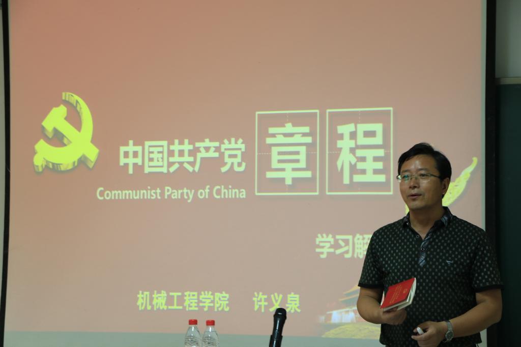 尔后,许义泉副书记组织大家学习了《中国共产党章程》,全面介绍了党章的地位、作用,系统梳理了党章的历史沿革,结合个人深入研究和思考,围绕党的十八大修改党章的重大意义,阐述了学习新党章的重要性和必要性,对新党章的理论创新和实践发展成果、学习党章须把握的重点问题等进行解读和系统阐述,使大家对新党章的精神实质和主要内容等有了更为清晰、深刻的认识,进一步树立了党章意识,增强了学习、遵守、践行党章的自觉性、坚定性。