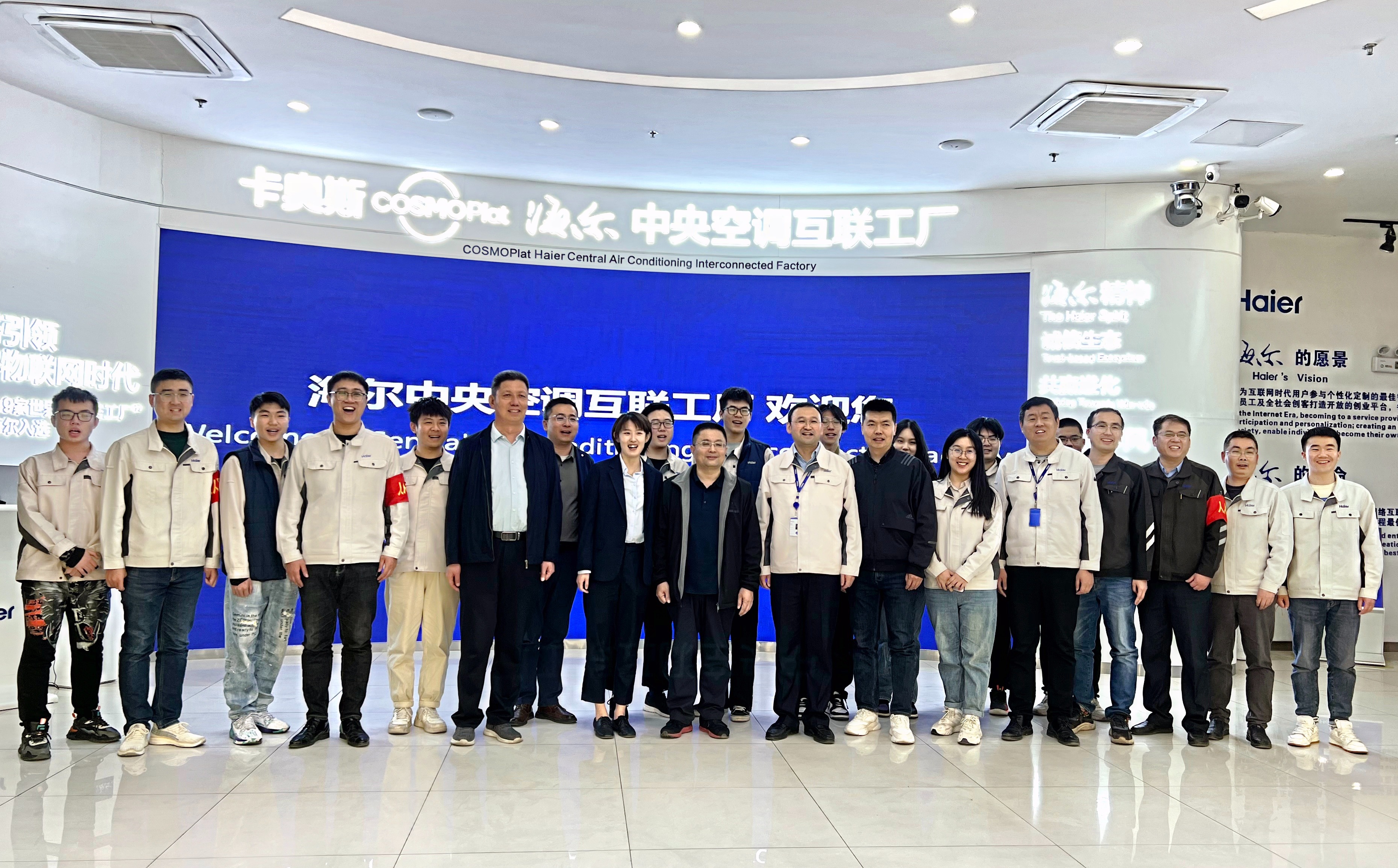 师生在海尔中央空调互联工厂合影留念