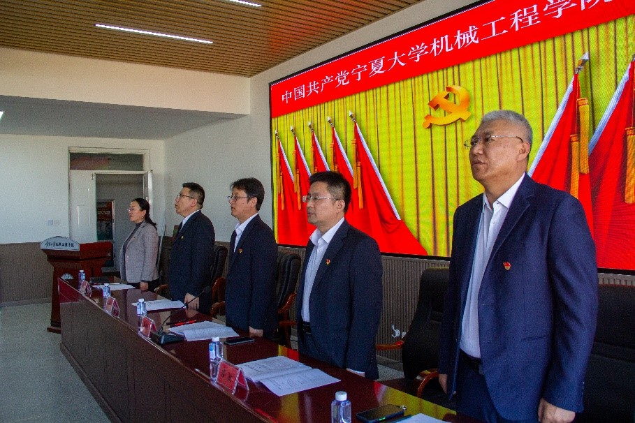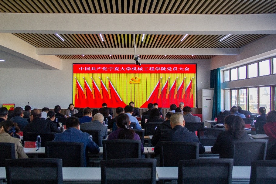 会场党旗庄严,气氛隆重,党员大会在庄严的国歌声中拉开了帷幕。