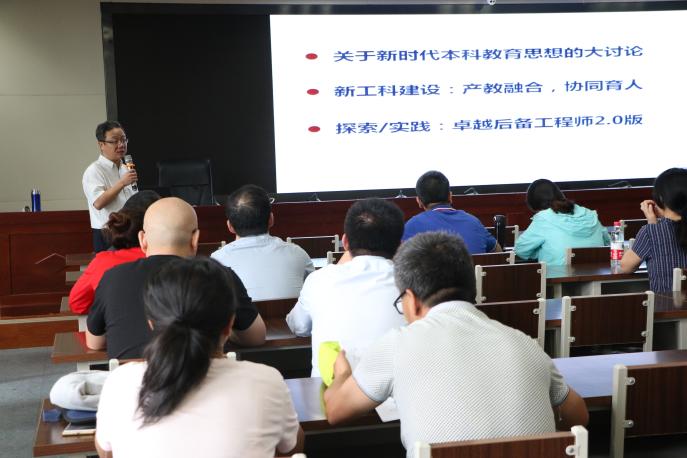 讨论会上,朱学军院长做了“新工科视域下机械类本科教育的机遇和挑战”的主题报告。朱学军院长围绕新工科建设的探索与实践、学科专业内涵建设的思路与对策、深化创新创业教育改革、构建产教融合、协同育人的人才培养新模式等方面阐述了观点。