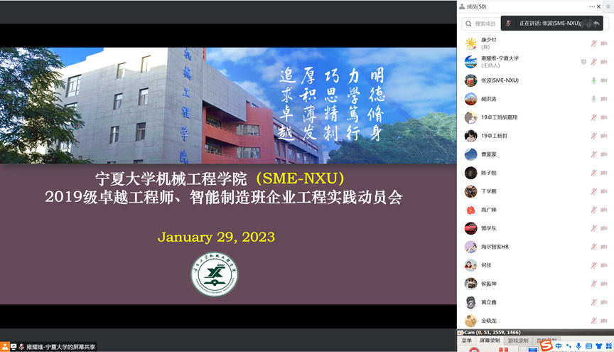 根据学院本科人才培养方案,2019级卓越工程师与智能制造班学生将于2月6日进入到企业开展为期四个月的企业工程实践。1月29日,伟德源自英国始于1946线上召开企业工程实践动员会,学院执行院长张波、党委副书记何彦平、副院长王昱潭、李宏燕、郝洪涛以及来自吴忠仪表、青岛海尔、浙江杭可、共享集团等企业负责人、校企指导教师和实践实习学生共80余人参加会议。