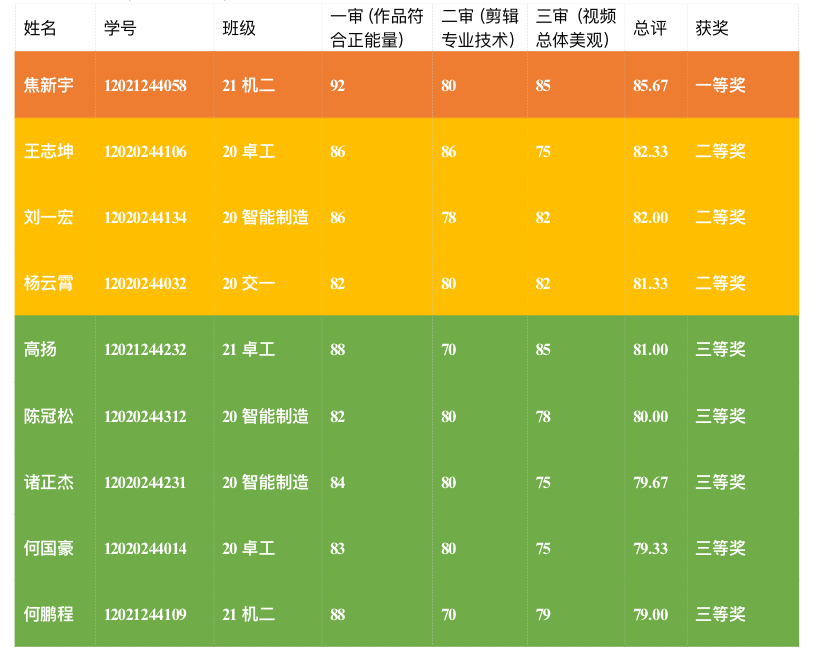 参赛作品分别从作品正能量程度、剪辑专业技术、视频总体美观程度三个方面进行评比,经过评委的评审和打分,最终评选出一等奖1人,二等奖3人,三等奖5人。