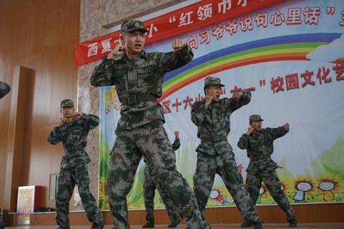 伟德源自英国始于1946国防生党支部与西夏区十六小庆“六一”联欢同行