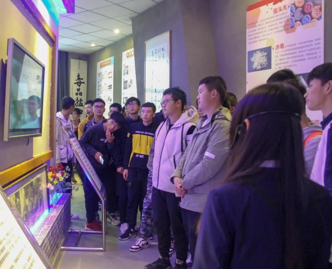 进入展馆,映入眼帘的是形形色色的毒品标本。讲解员带领着同学们了解了中国的禁毒史,从毒品的危害、特征方面带领大家深入了解毒品。同学们听得十分投入,不时地走到毒品标本前驻足参观,对着一副副吸毒工具注视良久,不由因它们的危害之深而发怵。