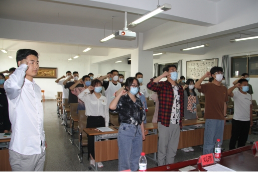 活动开始,全体起立,奏唱国歌。杨平宣读新团员名单。戴婷婷向新团员颁发团员证并佩戴团徽。接下来,进行入团宣誓,全体起立,面向团旗庄严宣誓,重温入团誓词,张燕鹏同学领誓。