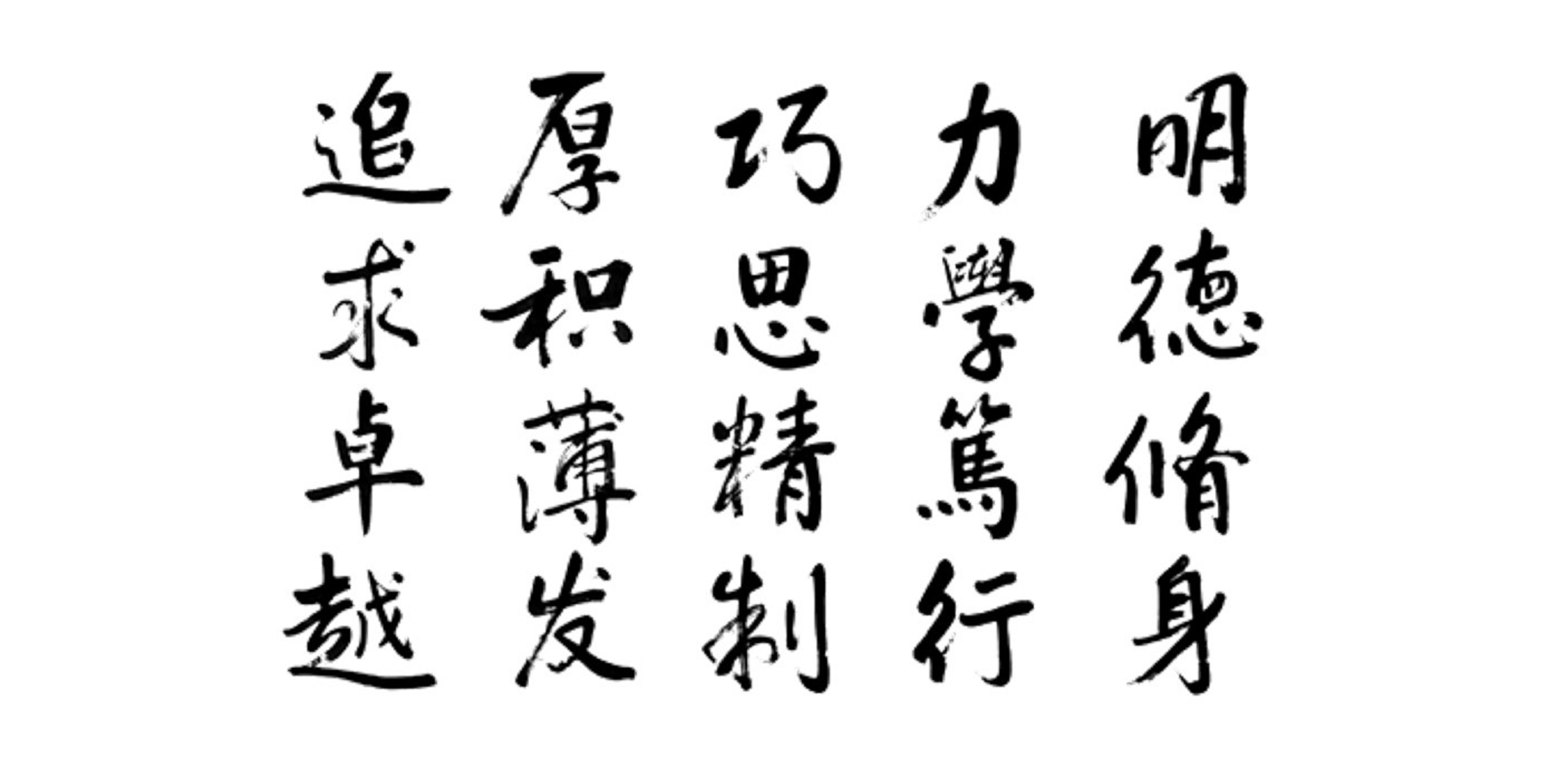 明德:语出《礼记.大学》首章:“大学之道,在明明德,在亲民,在止于至善”,即认同、践行和彰显美德。修身:是指修养身心,努力提高自身的思想道德修养水平。“明德修身”讲的是从德入手,先修德再修学,强调思想品德、价值观念、人文修养,常省己身、常怀家国。
