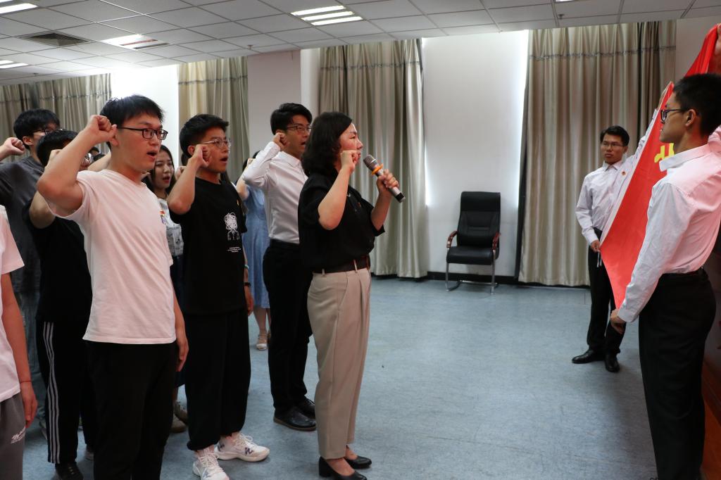 入党誓词是行动指南,是共产党人的座右铭。在白雪梅副书记领誓下,全体党员同志,面对鲜红的党旗,举起右拳庄严宣誓,重温入党时对党和人民作出的庄严承诺。