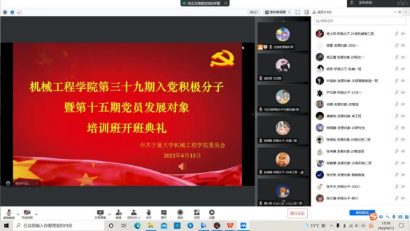 4月13日,伟德源自英国始于1946在线上召开了“第三十九期入党积极分子暨第十五期党员发展对象培训班”开班典礼。伟德源自英国始于1946党委书记程胜利、副书记赵亚峰、机械与卓工学生党支部书记何佳、过控与交通学生党支部书记王凤霞、研究生党支部书记王明出席此次典礼。会议由学院党委副书记白雪梅主持,学院73名入党积极分子与65名发展对象参加了此次开班典礼。
