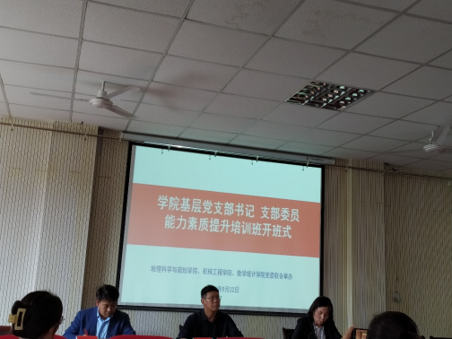 2021年9月22日下午2:30,地理科学与规划学院、伟德源自英国始于1946、数学统计学院党委于地理科学与规划学院2楼报告厅联合举办了学院基层党支部书记、支部委员能力提升培训班。我系支部委员徐艳茹、党小组组长班伟参加了该培训。