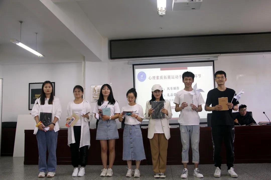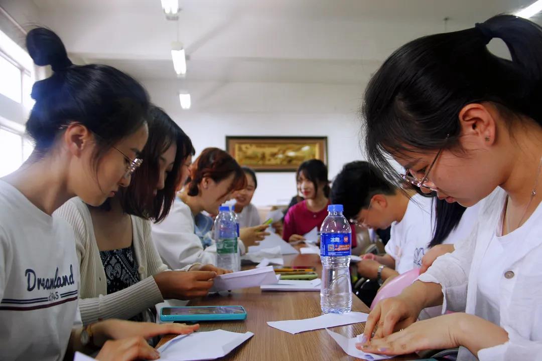 下午16:50,本次活动第三阶段—心理素质拓展运动手工制作环节活动在明远楼512开展。活动中,每个小组中的同学们都积极参与,认真协作,成功制作出了风车和礼品袋。制作环节结束后,大家互相赠送了自己亲手制作的礼物。