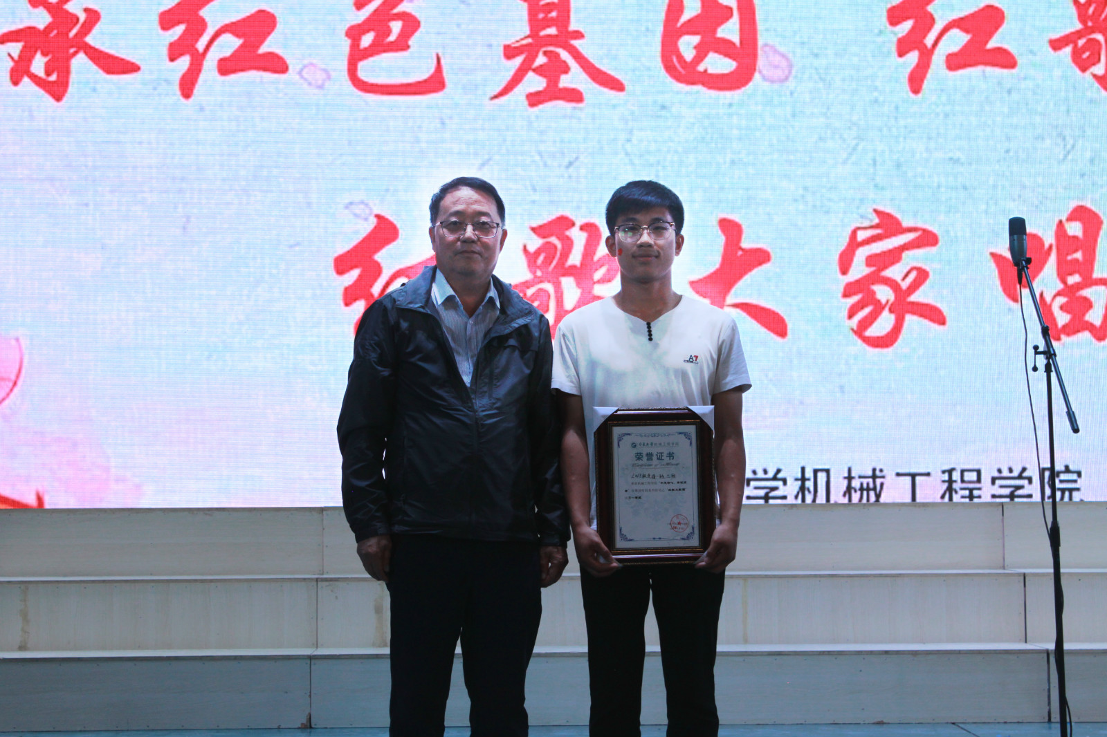 通过近两个多小时比赛,活动在学院“梦之队”和在场师生高唱《我们都是追梦人》的嘹亮歌声中落下帷幕。活动动结束后,音乐学院贺紫剑老师对整场比赛活动做了点评。2018级交通运输1班、2班获得本次红歌比赛一等奖;2018级机械5班、卓越工程师班和研究生获得本次红歌比赛二等奖;2016级过程控制与装备1班、2班和2018级机械1班、2班以及2018级机械3班、4班获得三等奖;2017级机械3班、卓越工程师班获得最具表演奖。出席本次比赛的评委老师依次为获奖队伍颁奖,整场活动圆满结束。