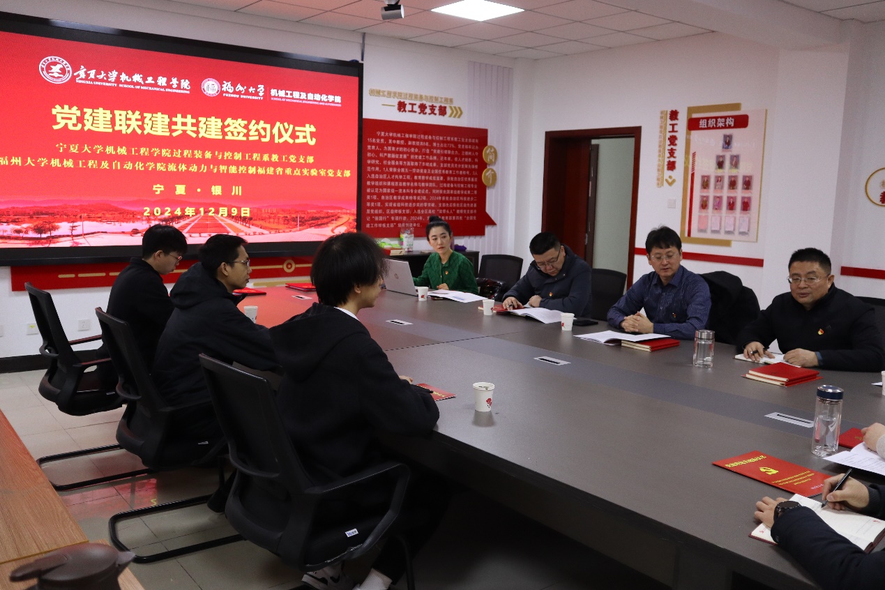 2024年12月9日,伟德源自英国始于1946过程装备与控制工程系教工党支部与福州大学机械工程及自动化学院流体动力与智能控制福建省重点实验室党支部在致远楼315会议室举行党建联建共建签约仪式。伟德源自英国始于1946党总支书记杨术明,副书记、执行院长张波,福州大学机械及自动化学院副院长杜恒及双方党支部党员代表参加了签约活动。