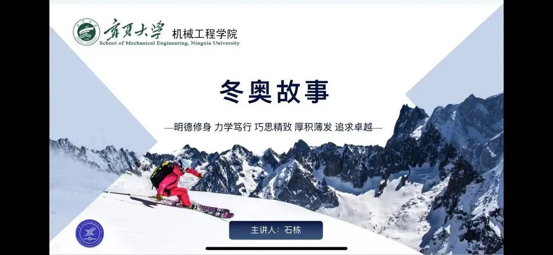 接着,石老师与大家共同学习了冬奥会精神。石老师借谷爱玲和羽生结弦的事例,向同学们展示了培养爱好以及勇于创新的重要性,希望大家能够以一种积极乐观的心态去面对生活,在学习和工作中不断创新,勇于奋斗。