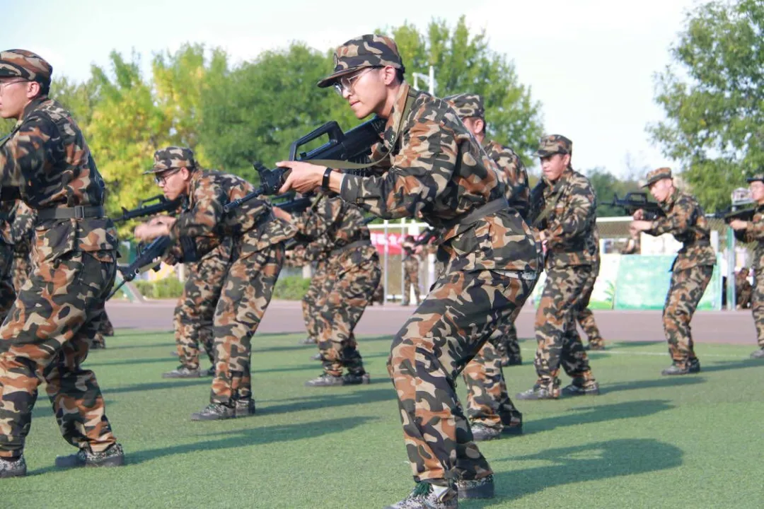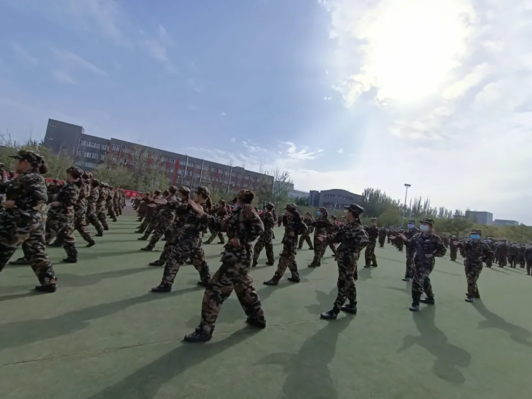 防爆方阵的同学们,不怕困难,勇往直前。随着教官的“一!二!”口号声,同学们的“打!杀!”声划破天际。
