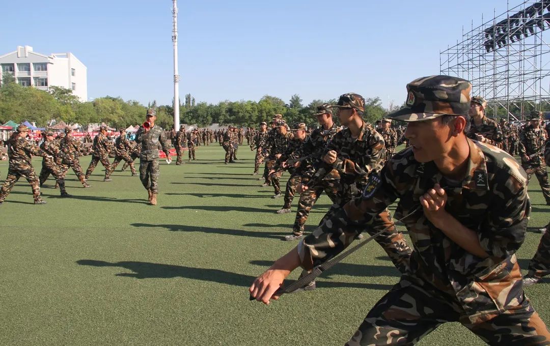 今日的军训场上,新生们正在练习着刺杀操——突刺、防左侧击、上步撞击、外拨转身刺……一系列的动作被新生们快、准、狠的展现出来。经历了前七日在烈日下挥汗如雨、腰酸腿痛的时光,如今新生们每一次的落脚都铿锵有力,每一次的整队都迅速有序,每一句的口号都气壮山河。一突一刺、一防一击,豪情壮志,精神抖擞,尽显伟德官网风采。