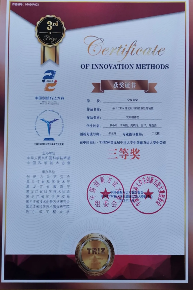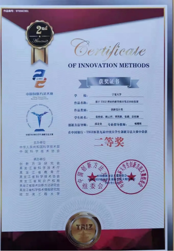 近日,中国银行·TRIZ杯第九届中国大学生创新方法大赛决赛评审结果揭晓。伟德源自英国始于1946参赛团队荣获二等奖3项、三等奖1项,指导老师邵金龙获优秀联络员奖。
