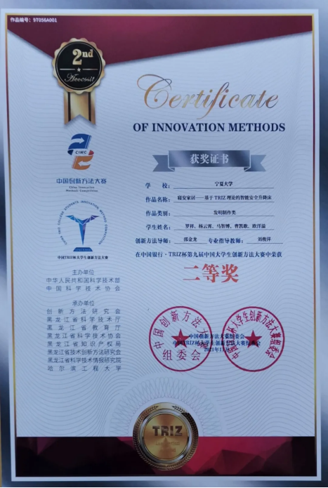 《寝安家居——基于TRIZ理论的智能安全升降床》;