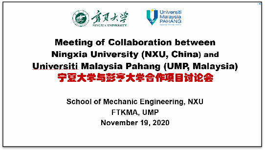 2021年11月19日(14:30-16:00),伟德源自英国始于1946(School of Mechanical Engineering,NXU)与马来西亚彭亨大学机械与汽车工程技术学院(Faculty of Mechanical & Automotive Engineering Technology, FTKMA , UMP),围绕中外合作办学项目和本科双学位项目,召开了在线视频工作会议(Zoom)。