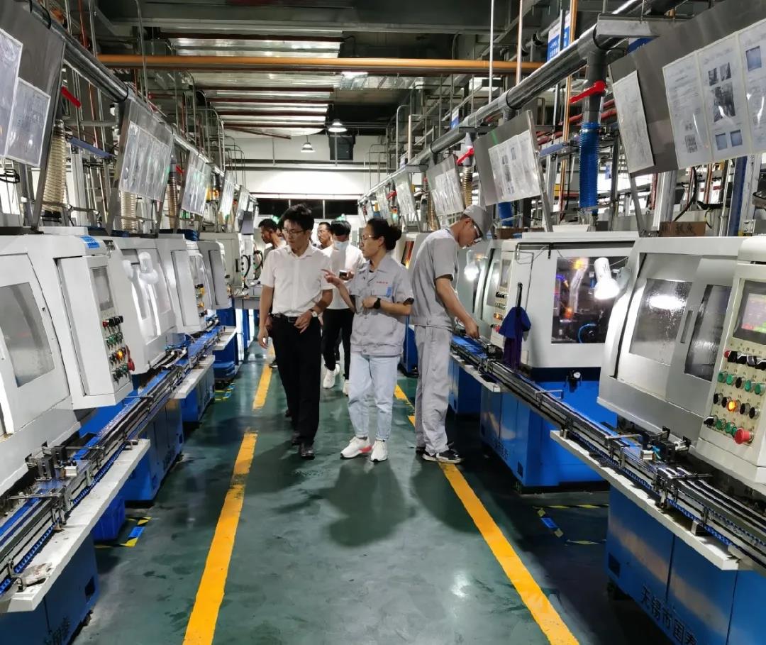 最后,老师和同学来到银川轴承智造小镇有限公司,在公司两位负责人带领下参观作业流水车间,了解公司的平台架构、产业合作、服务平台和核心优势,表示欢迎毕业生积极加入智造小镇,提高能力,实现就业。