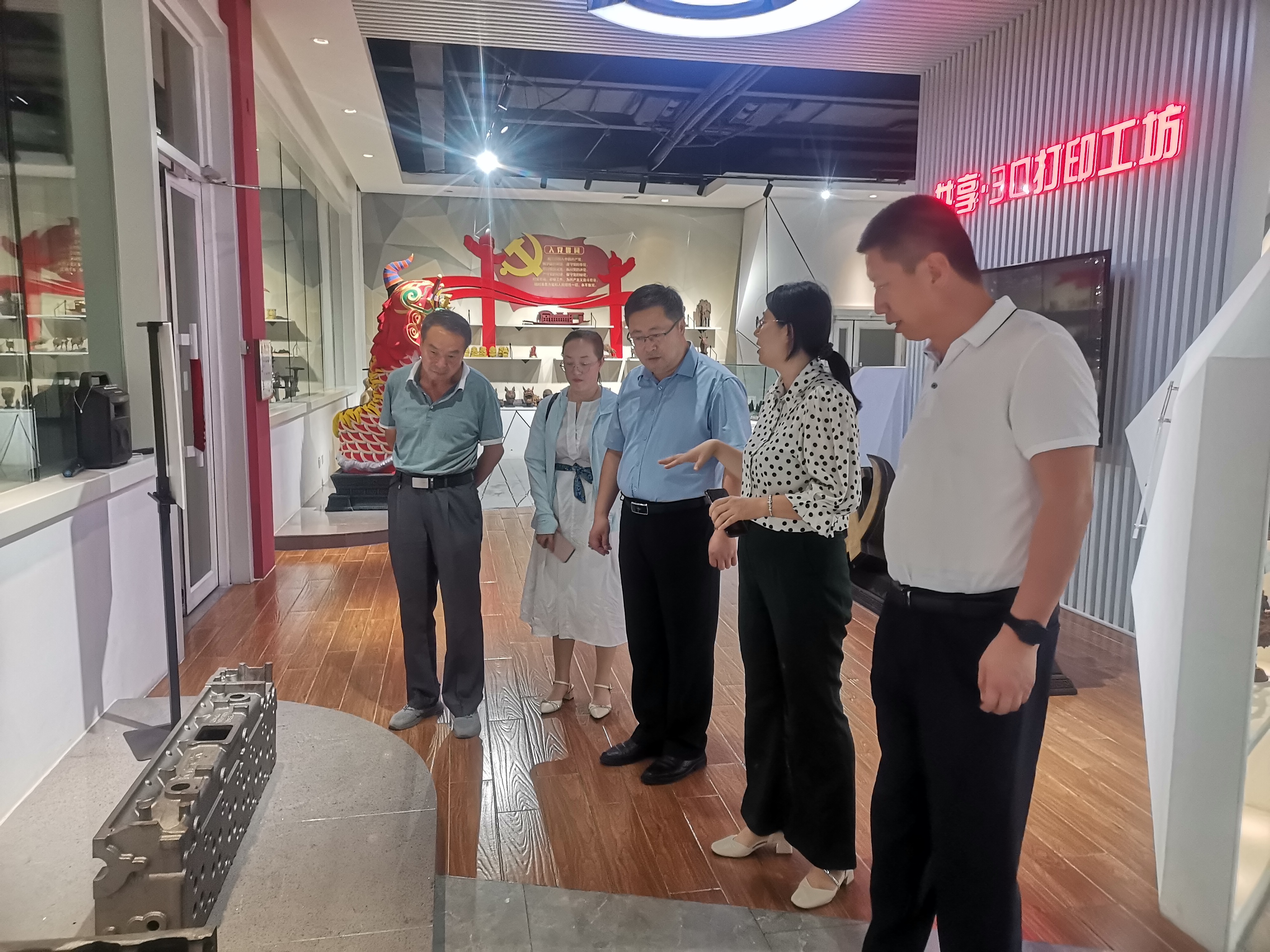 8月3日,在共享装备集团有限责任公司国家智能铸造产业创新中心产教融合中心经理曹艳丽的陪同下,参观了共享铸造3D打印成形智能示范工厂和共享3D打印工坊。