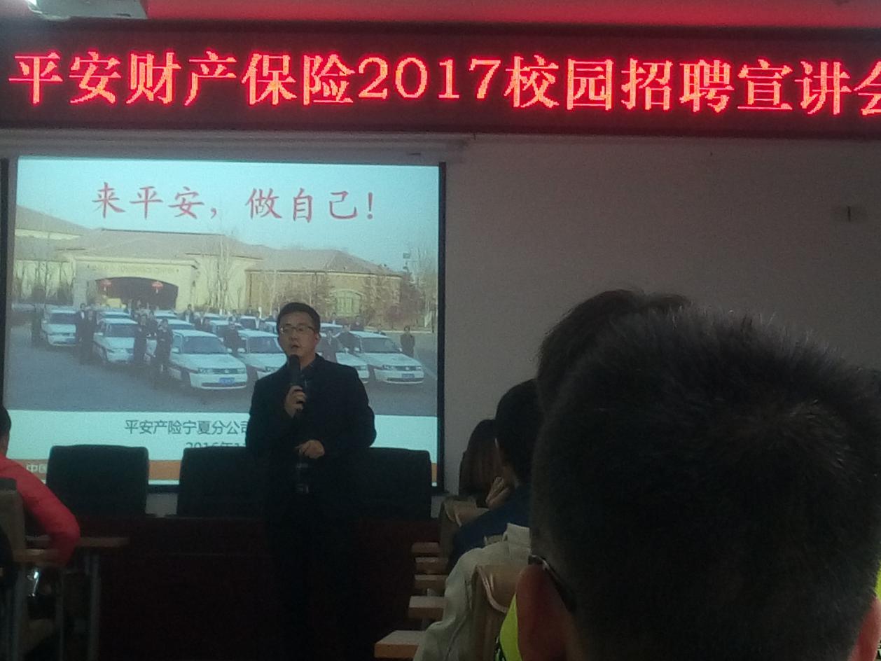 为解决应届毕业生就业问题,2016年11月17日下午安产险宁夏分公司来伟德官网进行宣讲招聘。伟德官网毕业生相关专业同学积极参加。