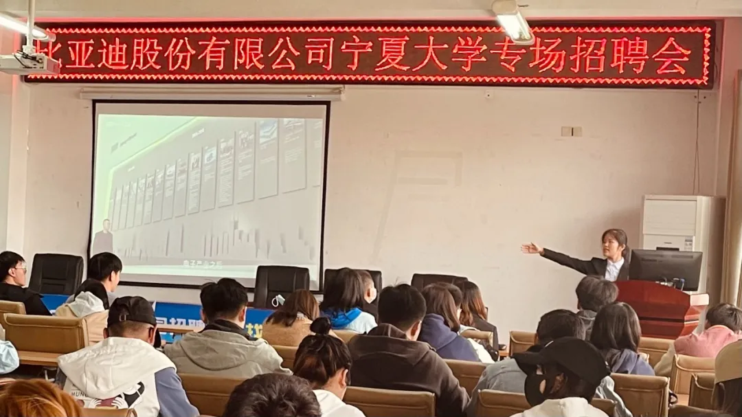 比亚迪股份有限公司主讲人介绍了公司的“明日之星”人才培养计划以及公司的具体业务,详细阐释了公司与时代同频共振的发展理念,鼓励同学们与公司携手前行,共同进步。