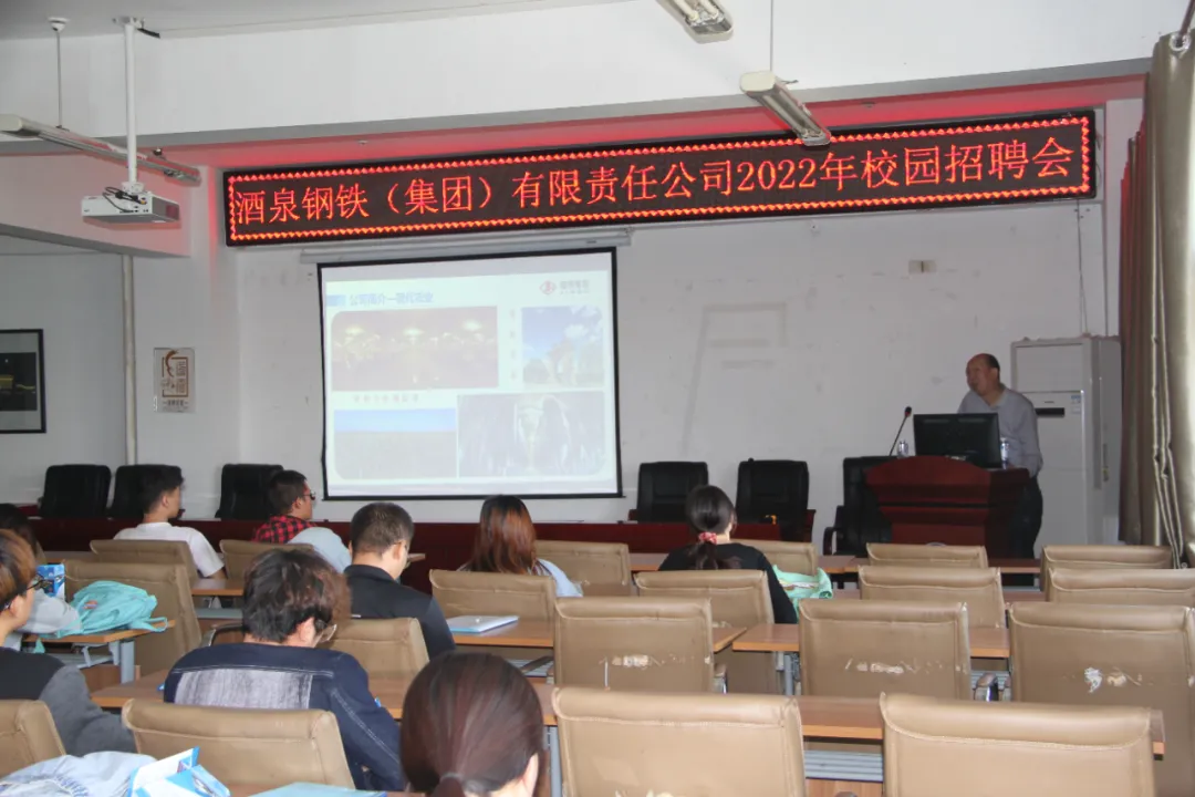 9月28日,甘肃酒泉钢铁集团(后简称酒钢集团)在明远楼512室举办了2022届校园招聘会,此次招聘会面向伟德官网2022届毕业生及其他有意愿的学生。