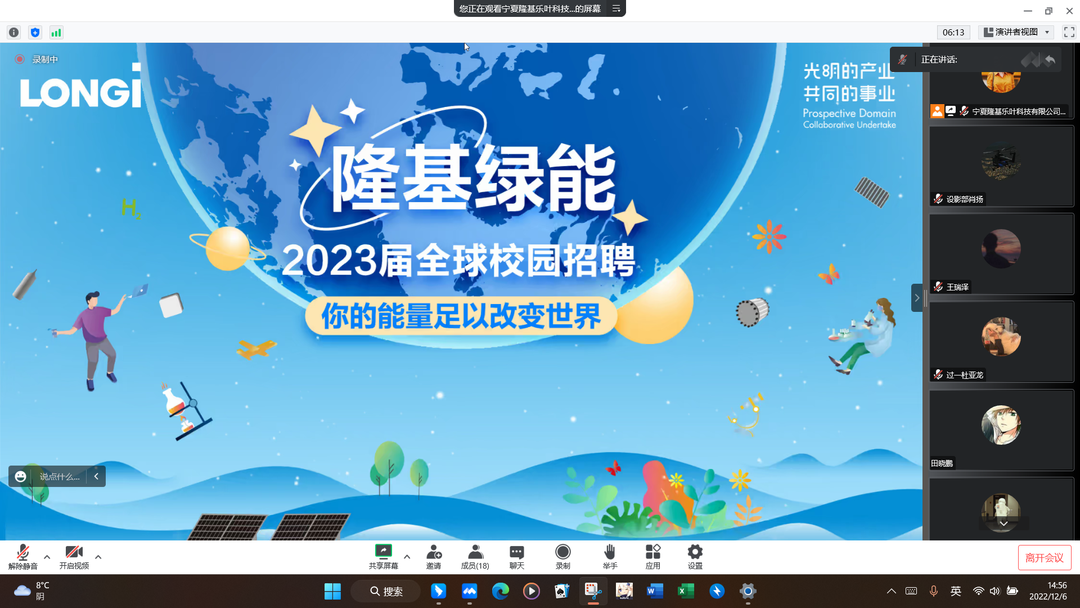 招聘会上,主讲人首先以PPT的形式介绍了隆基乐叶科技有限公司的发展历程,发展方向及成就。宁夏隆基乐叶科技有限公司成立于2018年5月,是隆基绿能科技股份有限公司旗下全资子公司,集单晶PERC技术的太阳能高效电池研发、生产于一体,投产后年产值超过百亿元。