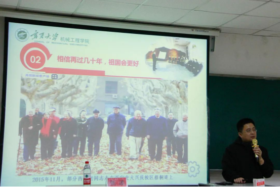 随后,张院长具体讲了“西迁精神”的重大现实意义与历史意义。张院长说:“要发扬老教授们这种西迁精神”,以此来告诫青年:我们这个民族就是在艰难困苦中历练、成长起来的。