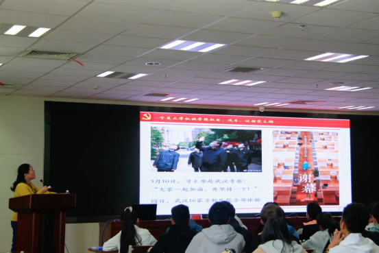 李宏燕老师以“抗击新冠肺炎疫情的中国行动”为主题,首先向大家讲解了抗击疫情的艰苦历程。从新冠疫情爆发的迅速应对到初步遏制,最后取得决定性成果的过程,都离不开党和国家的正确领导。